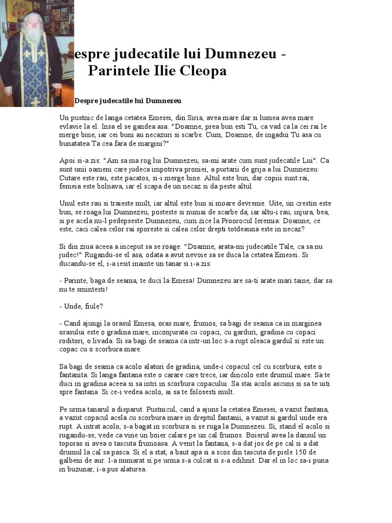 Espre Judecatile Lui Dumnezeu Parintele Ilie Cleopa