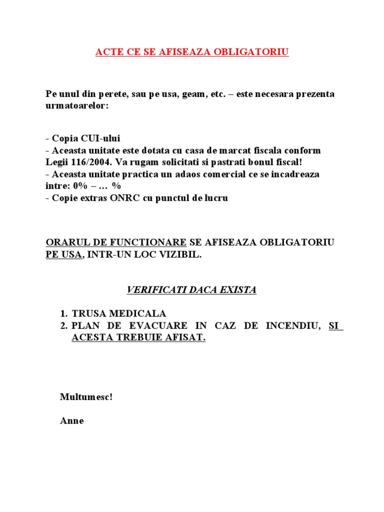 Acte Ce Se Afiseaza Pe Perete Obligatoriu