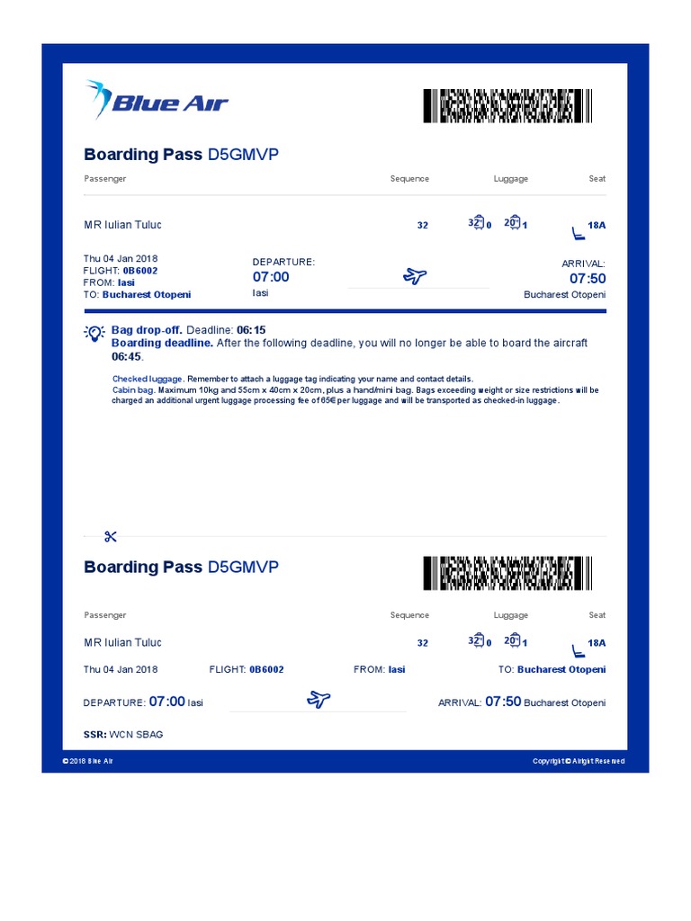Blue Air Boarding Pass For Flight From Luton Ltn Airport Stock Photo Alamy