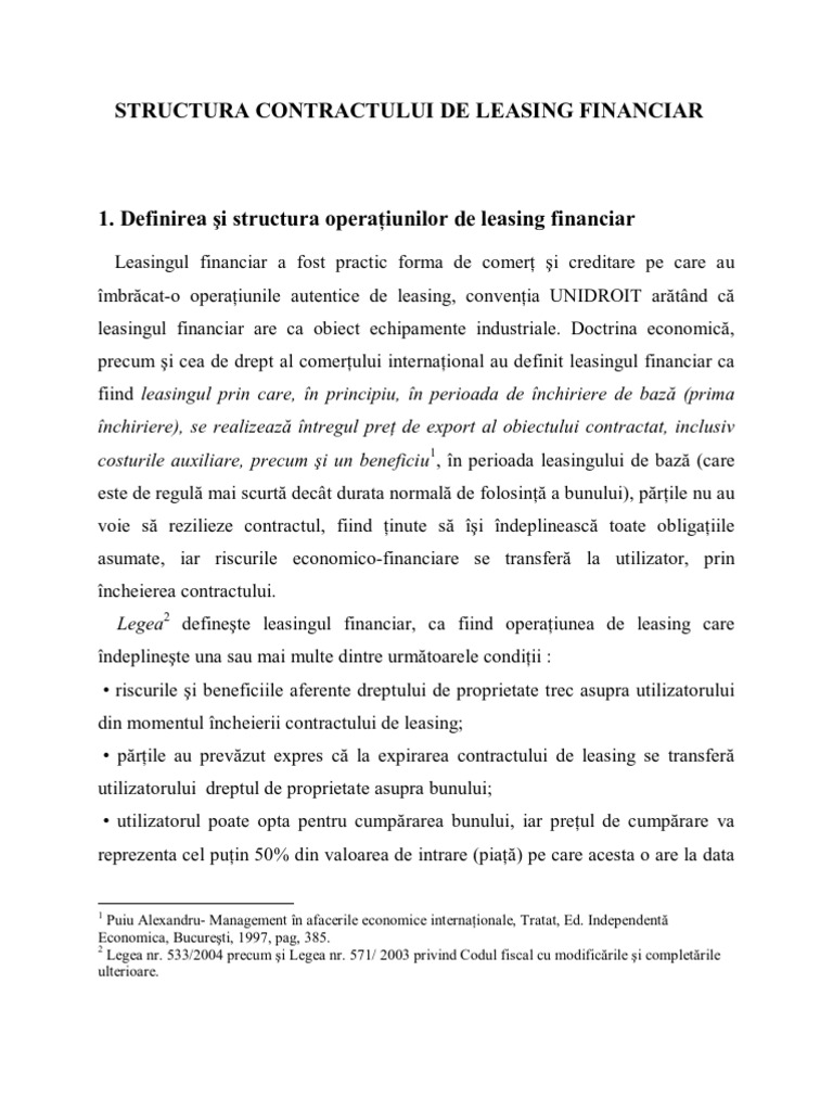 Referat Structura Contractului De Leasing Financiar