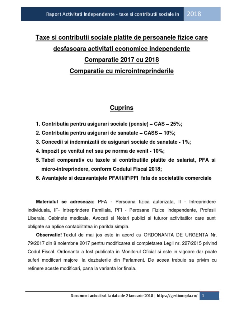 Martie 2018 Cas Cass Si Impozit Datorate De Activitatile Independente Ghid Pfa
