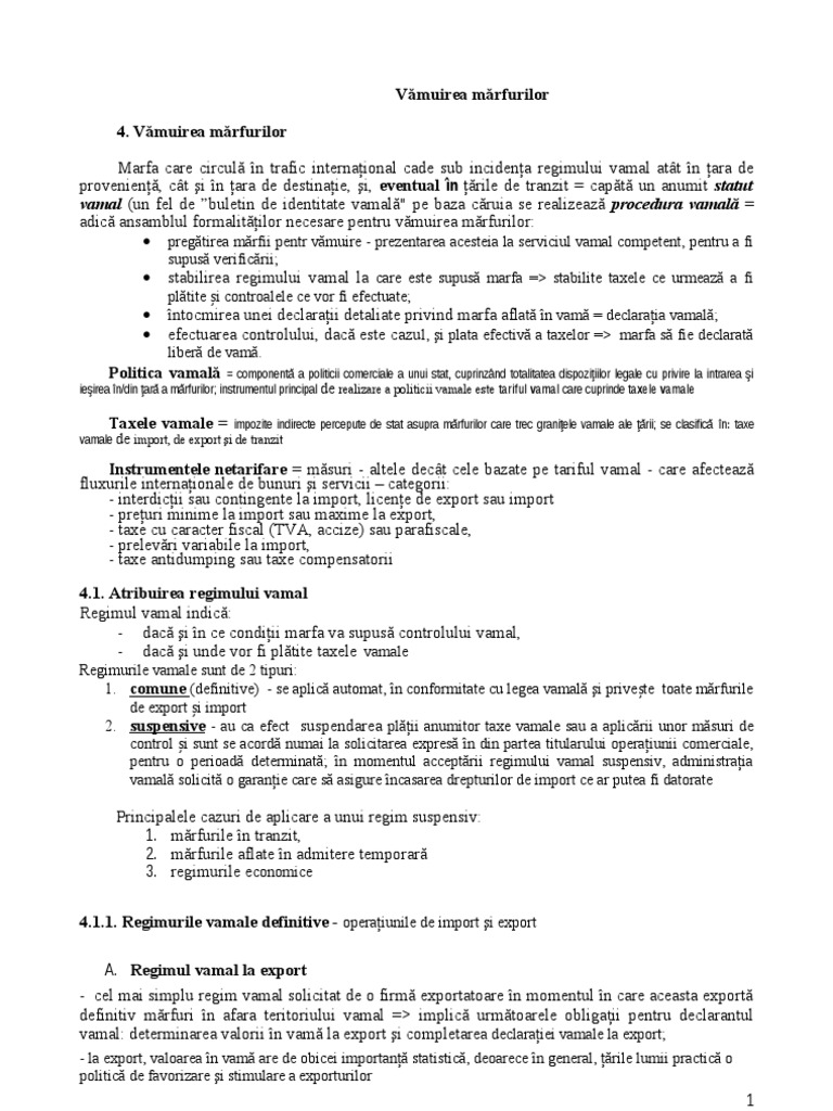 Seminarul 4 Vamuirea Marfurilor