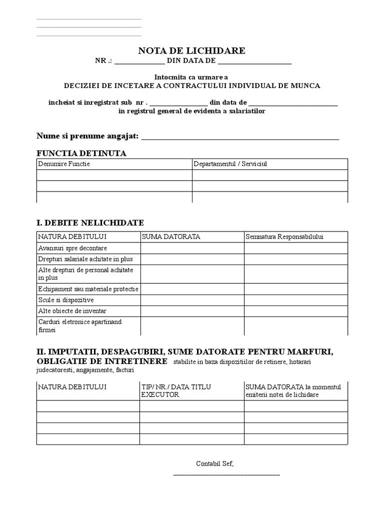 Nota De Lichidare Descarcă Gratuit Un Model Al Documentului S Ar Putea Să Devină Obligatoriu Pe Viitor