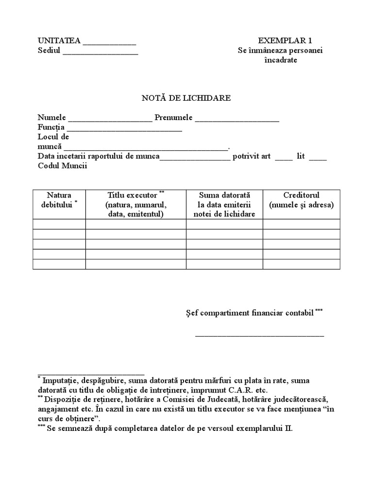 4 3 Nota De Lichidare Pdf