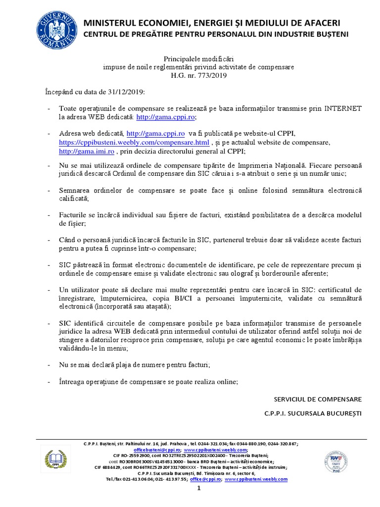 Atenție Principalele Modificări Impuse De Noile Reglementări Privind Activitate De Compensare H G Nr 773 2019 Cabinetexpert Ro Blog Contabilitate